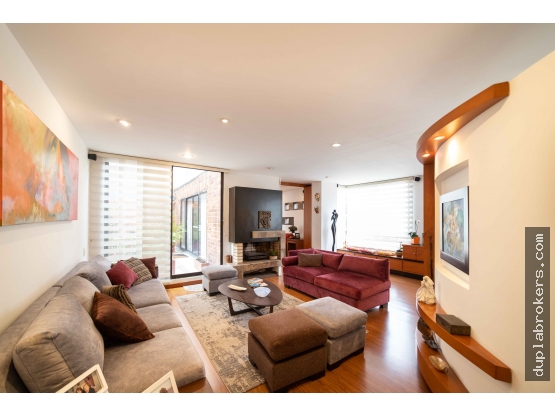 La chimenea es un elemento clave en las noches frías de Bogotá, brindando un ambiente cálido y acogedor en la sala de estar, ideal para pasar tiempo en familia o con amigos. El piso de madera le da un toque de elegancia y calidez a cada uno de los espacios del apartamento, creando una armonía perfecta entre la decoración y la comodidad.